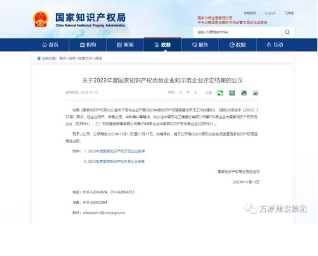 近日,國家知識產權局公示了2023年國家知識產權優(yōu)勢和示范企業(yè)評定結果,方原集團山東鐵鷹建設工程有限公司榜上有名。