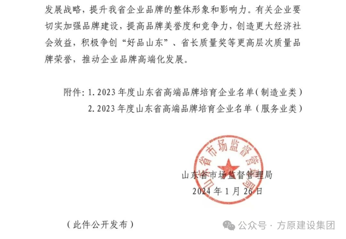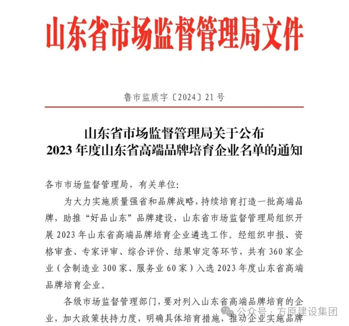 公司入選2023年度山東省高端品牌培育企業(yè)名單