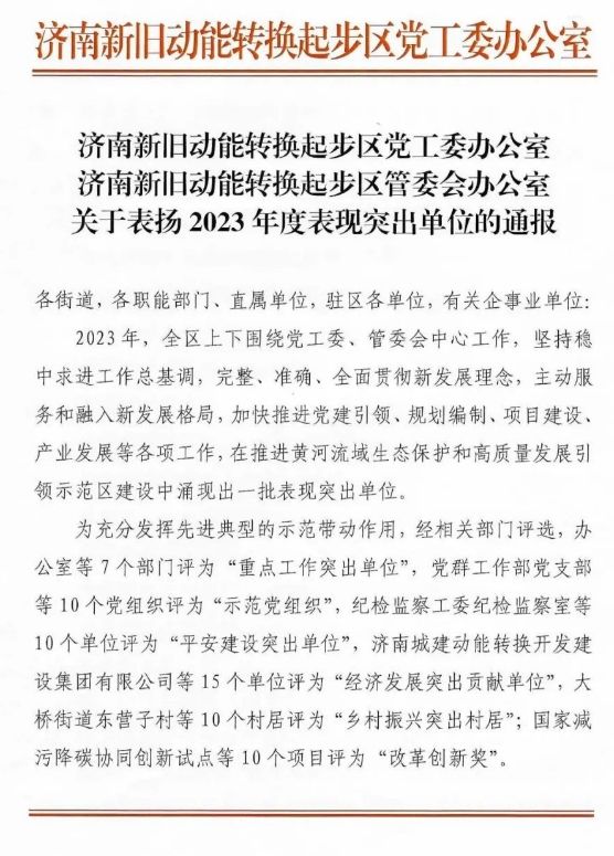 喜報(bào)|山東方原建設(shè)集團(tuán)榮膺濟(jì)南新舊動(dòng)能轉(zhuǎn)換起步區(qū)經(jīng)濟(jì)發(fā)展突出貢獻(xiàn)單位
