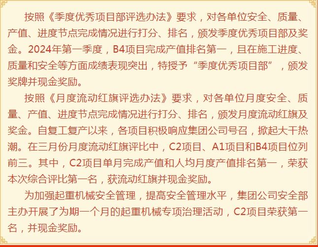 2024年一季度,各單位、各項目認真踐行集團“品牌提升年”戰(zhàn)略,取得了可喜成績,獲得的主要榮譽和成果有: