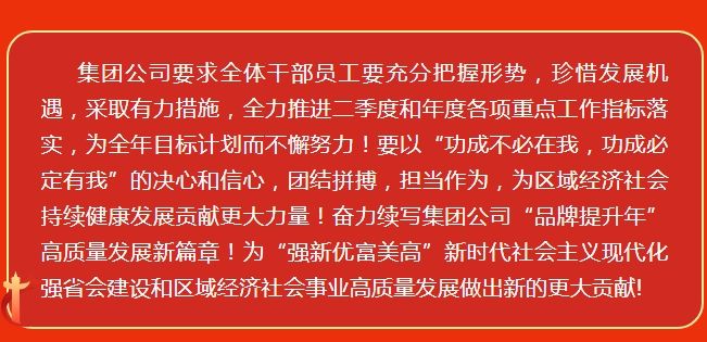 楊總強調(diào),2024年二季度,集團公司將繼續(xù)堅持黨建、文化聚力,以“品牌提升年”和“管理精進年”活動為總抓手,聚焦主營業(yè)務(wù),發(fā)力,盡快補齊一季度指標缺口;持續(xù)抓好任務(wù)承攬、安全生產(chǎn)、創(chuàng)優(yōu)創(chuàng)獎、降本增效、清收清算等工作,圍繞健康可持續(xù)高質(zhì)量發(fā)展,繼續(xù)深化推進績效考核和強制分步評價方案,加快人才干部隊伍能力素養(yǎng)提升建設(shè)。