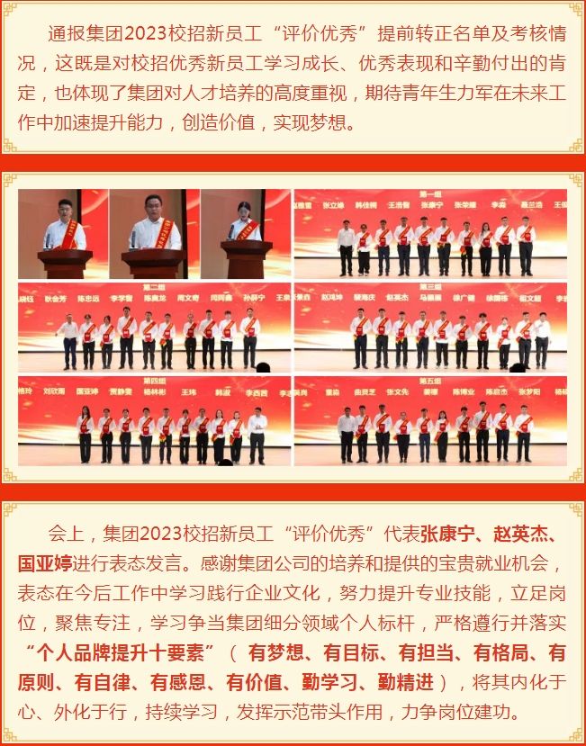 六、通報集團2023校招新員工“評價 優(yōu) 秀”提前轉(zhuǎn)正名單及考核情況;