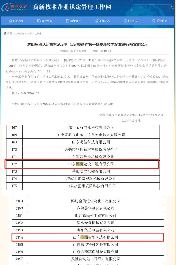 熱烈祝賀方原集團(tuán)旗下山東方垠智能制造有限公司和山東鐵鷹建設(shè)工程有限公司順利通過 高 新 技 術(shù) 企 業(yè) 認(rèn)定
