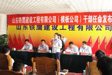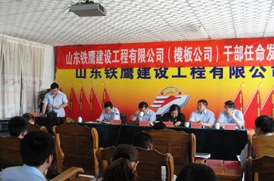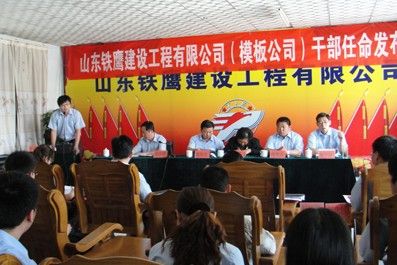 2012年5月2日早9:00,山東鐵鷹建設(shè)工程有限公司干部任命發(fā)布會在會議室召開。對榮祥峰、趙福偉、郭慶國、白代柱、宋金萍、張琨等6位同志做出任命發(fā)布,并頒發(fā)證書。公司領(lǐng)導(dǎo)與任命干部親切合影留念。