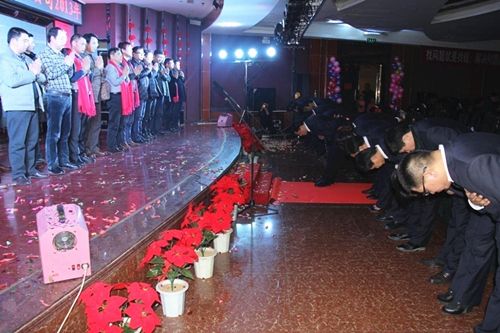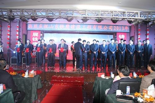 新春佳節(jié)之際,伴著喜悅,帶著祝福,攜著期待,1月20日下午1點(diǎn)30分我公司在華泰大酒店隆重舉辦2013年度工作總結(jié)暨表彰大會(huì)與發(fā)改委成立儀式大會(huì)。我公司楊明波總經(jīng)理,楊明春副總經(jīng)理、劉學(xué)深副總經(jīng)理,模板公司榮祥峰副總經(jīng)理及工程公司各項(xiàng)目經(jīng)理代表李德田,邵賢生、趙永忠等出席大會(huì)。到場(chǎng)嘉賓還有市委領(lǐng)導(dǎo),各銀行領(lǐng)導(dǎo)及兄弟企業(yè)中國(guó)保麗潔集團(tuán)董事長(zhǎng)蘇立華,巨鼎餐飲集團(tuán)杜欣濤董事長(zhǎng),企業(yè)稻香園董事長(zhǎng)賀華德,,泰安思八達(dá)經(jīng)理何志剛、徐江龍等30多家企業(yè)主要領(lǐng)導(dǎo),與我公司全體員工歡聚一堂,共同慶祝2013年的收獲,表達(dá)2014年的期待與祝愿。