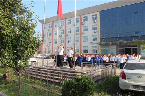 早上7:30,公司全體員工集結(jié)在公司院內(nèi),舉行了抗日戰(zhàn)爭(zhēng)勝利暨世界反法西斯戰(zhàn)爭(zhēng)勝利70周年的活動(dòng)。本次活動(dòng)由公司副總經(jīng)理榮祥峰主持。