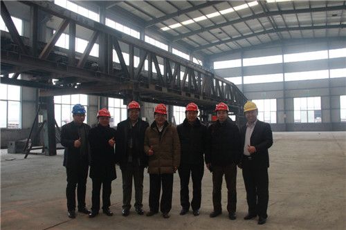 評審專家與公司高管在公司產(chǎn)品移動棧橋前合影