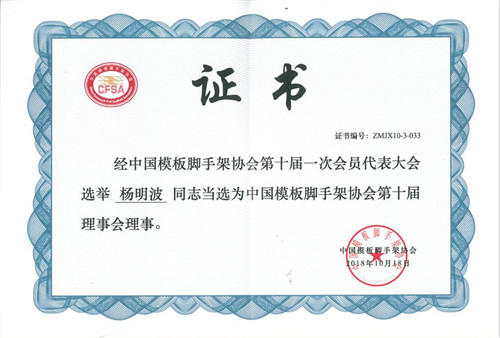 熱烈祝賀董事長楊明波當(dāng)選為中國模板腳手架協(xié)會第十屆理事會理事