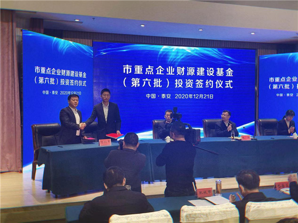 12月21日上午,市委、市政府舉行市重點(diǎn)企業(yè)財(cái)源建設(shè)基金(第六批)投資簽約儀式,對(duì)12家企業(yè)(公司)進(jìn)行投資支持,我公司獲得1億元資金支持。泰安市市長(zhǎng)張濤等領(lǐng)導(dǎo)出席簽約儀式。