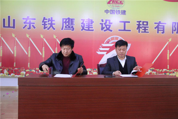 董事長(zhǎng)楊明波(右)與濟(jì)南項(xiàng)目經(jīng)理鞏福春(左)股份制簽約