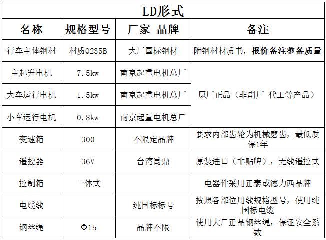 2020.3.11號下午13:00 5噸行車標(biāo)的已開,各投標(biāo)供應(yīng)商標(biāo)的行車配置品牌雜亂 各不相同,無法做出性價(jià)比對比。為保證公平性,現(xiàn)規(guī)定主配件品牌及規(guī)格參數(shù)等要求,進(jìn)行二次投標(biāo)。請各投標(biāo)供應(yīng)商按照要求進(jìn)行投標(biāo)報(bào)價(jià),具體配置要求如下: